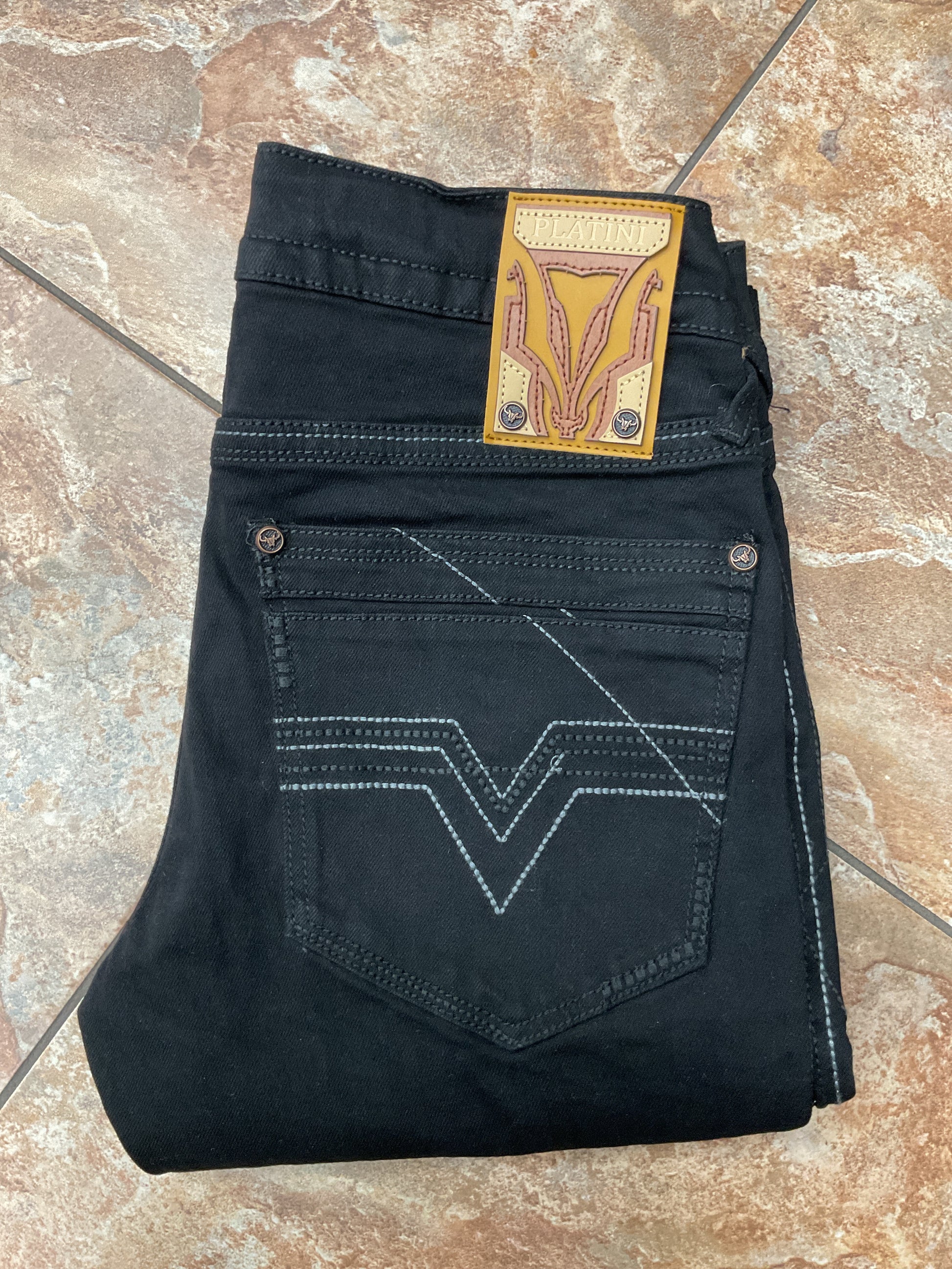 Platini light stitch bootcut black jeans